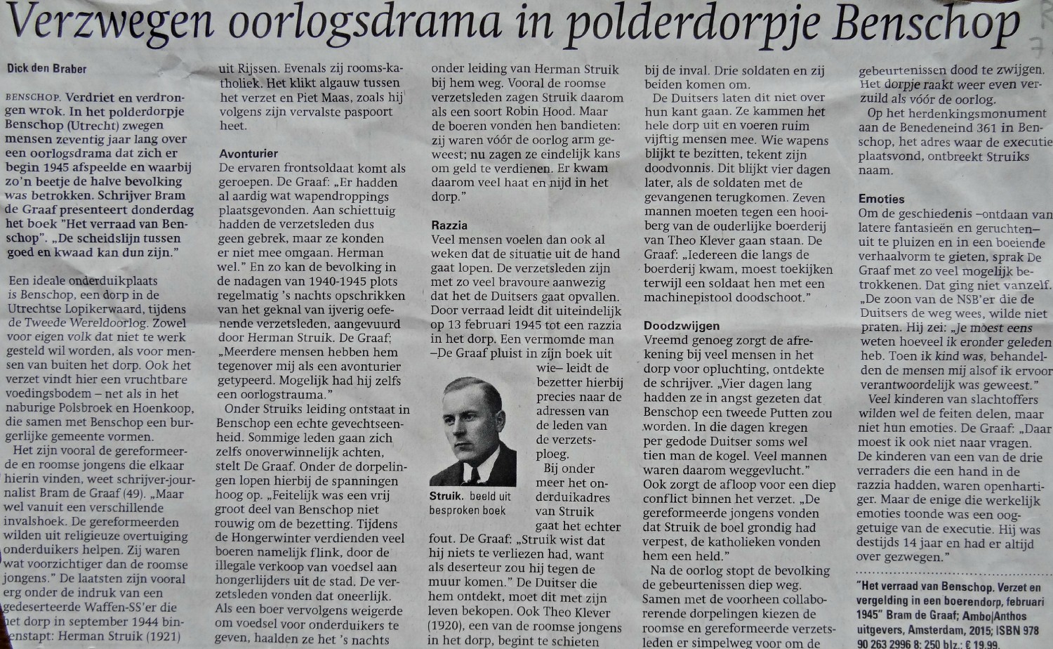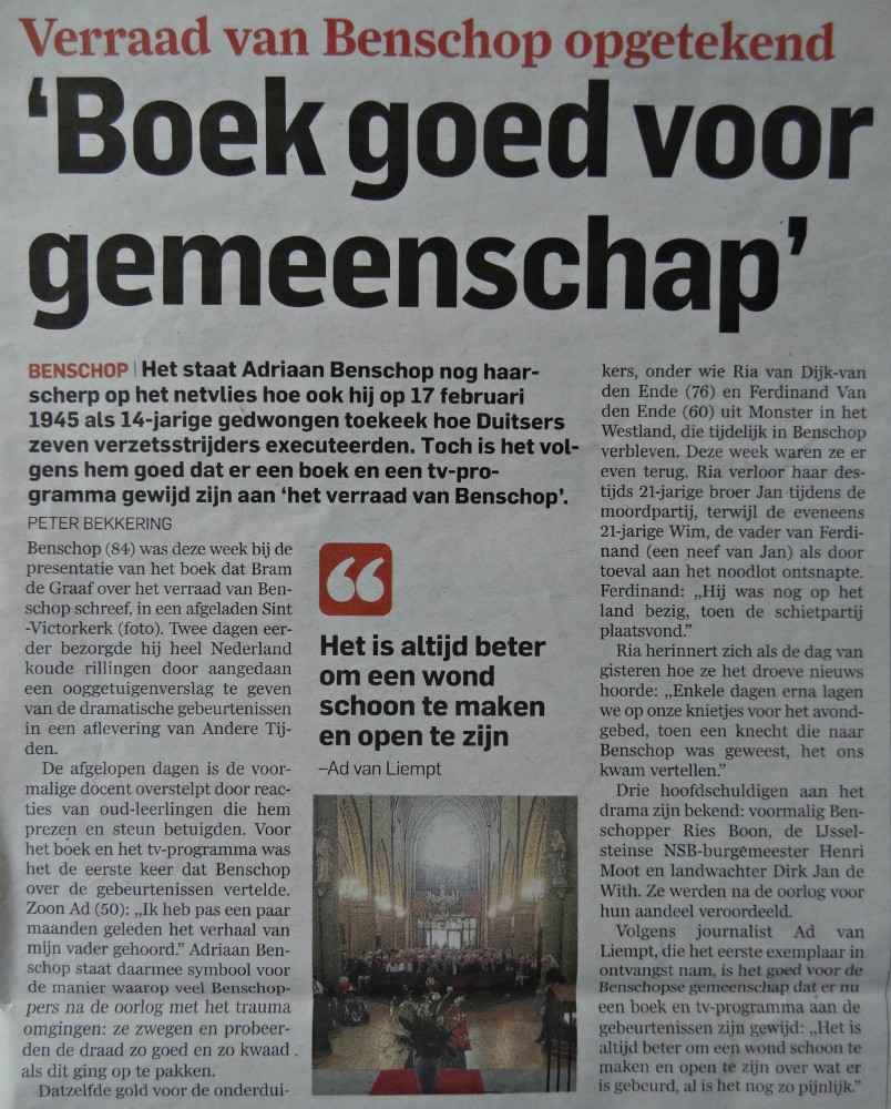 Liesbeth de Moor ging naar Benschop en sprak met Bram de Graaf en met Piet Klever, wiens vader door de Duitsers werd gefusilleerd.